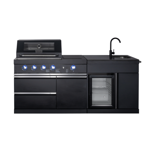Vanjska kuhinja Pure Plus je elegantna samostojeća vanjska kuhinja u crnom dizajnu s autentičnim američkim stilom. Ova ljetna samostojeća vanjska kuhinja uključuje sve bitne značajke za kuhanje na otvorenom – veliki plinski roštilj s 4 učinkovita plamenika i bočnim plamenikom s infracrvenim grijanjem, hladnjak za hranu i piće te prostrani sudoper s integriranom kantom za otpad u odjeljku ormarića. Kao i dodadtni oramrić za pohranu. Pure Plus vam pruža praktičnu i funkcionalnu ljetnu kuhinju koja nudi jednostavno kuhanje u elegantnom i robusnom dizajnu. Vanjska kuhinja ima prekrasnu i jednostavnu radnu ploču za održavanje od crnog sinteriranog kamena s mramorom, stvarajući prekrasnu atmosferu za vašu terasu. Sinterirani kamen podsjeća na elegantan dizajn mramora i u mnogočemu je savršen izbor materijala za vanjsku kuhinju – vrlo je izdržljiv, otporan na vremenske uvjete i jednostavan za održavanje. Ukratko, sinterirani kamen kombinira elegantan dizajn s izuzetnom izdržljivošću tako da možete uživati u svojoj elegantnoj vanjskoj kuhinji dugi niz godina.