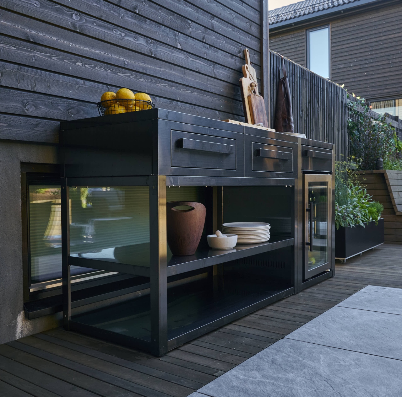 Vanjska kuhinja Nordic set 120 uključuje modul za dva elementa, plinski roštilj i sudoper. Samostojeća vanjska kuhinja ravnog oblika proizvedena od nehrđajućeg čelika elegantnog crnog dizajna. Ovu korisnu kuhinju možete postaviti bilo gdje i idealna je ako želite sve blizu prostora za kuhanje ili imate ograničen prostor na otvorenom.